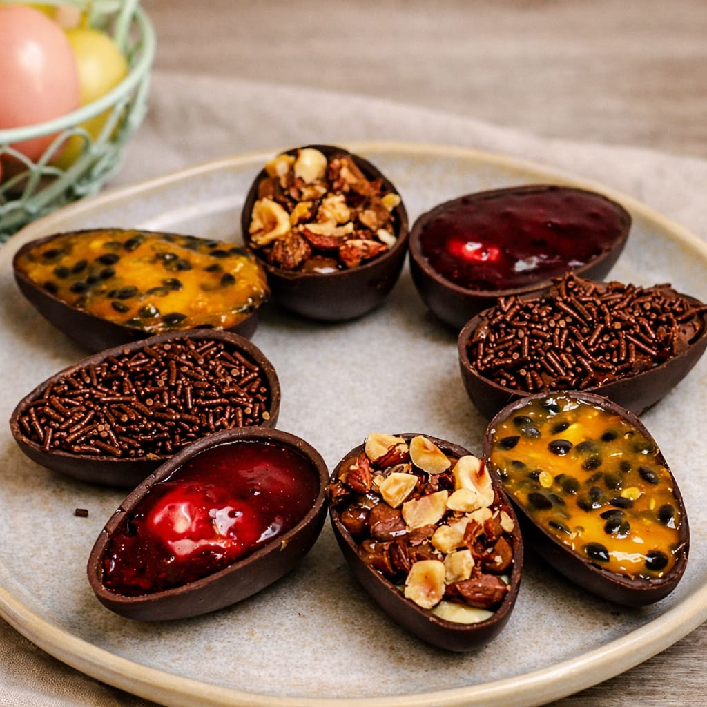 kit com 4 mini ovos, sobor brigadeiro , ninho com avelã , frutas vermelhas e maracuja