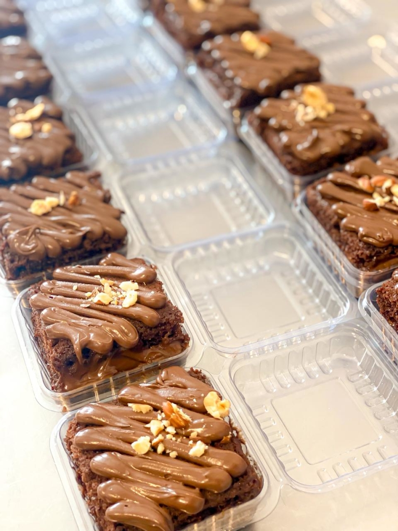 Sem glúten | zero lactose| adoçado com demerara| serve 1 pessoa Nosso delicioso brownie , feito com farinha de amêndoas, cacau 100% adoçado com demerara e açúcar de coco, com uma deliciosa cobertura cremosa de Ninho,. Zero lactose. Não contem glúten.
